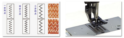 特點:全新上下送料設計可實現一步兩點曲折縫紉;采用半回轉大型擺梭、減少換底線次數實現粗線、厚料、裝飾縫紉;適宜于沙發、座墊、鞋、皮革制品曲折縫、拼縫、裝飾縫。