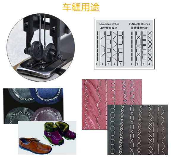 用途:適用于手提袋的手把、棒球手套、安全帶、帳篷、椅墊、鞋類、箱包類等極厚物料之縫制。